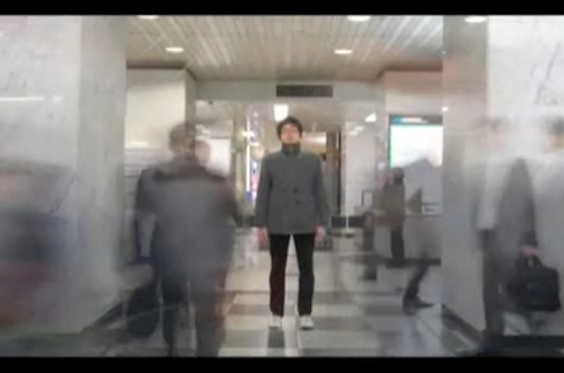 This "video" is not a video at all: it is a stop-motion animation composed of approximately 1,200 pictures. The creator took the pictures in a crowded Osaka train station one day over the course of several hours, stripping down to his underwear every hundred or so shots to create the illusion of outfit metamorphosis.