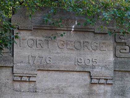 The tunnel’s labeled with the chiseled sign “Fort George 1776 1905.” The first date refers to Fort George, originally Fort Clinton, which was built by US patriots at about where George Washington High School stands at Audubon Ave. and W. 192nd St. Though the British eventually captured the fort, Colonel William Baxter and his Bucks County Pennsylvania militia were able to hold off British general William Howe’s troops long enough for Washington’s troops to escape to New Jersey (much of the Revolutionary War in 1776 in the NYC area consisted of Washington escaping to fight again). The second date refers to the date that the tunnel was completed.
