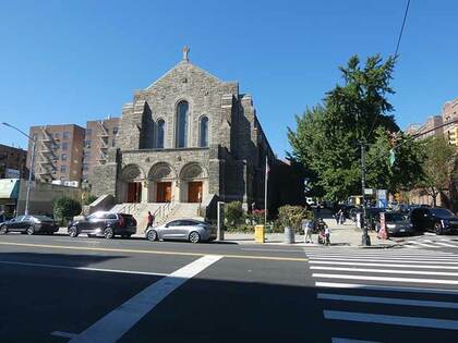The first Good Shepherd Catholic church was a wood frame building that was moved across Cooper Street around 1930 and later razed to make way for an addition to the elementary school. When the IND subway reached Inwood in the early-1930s, the population increased, necessitating a bigger church, and the present Romanesque church was built on Broadway and Isham St. in 1935 from Fordham gneiss mined in Manhattan and Bronx quarries. Originally established to minister to Inwood’s Irish community, the Church of the Good Shepherd of today, with the aid of the Capuchin Franciscan Friars, Province of St. Mary serves a largely Hispanic congregation.