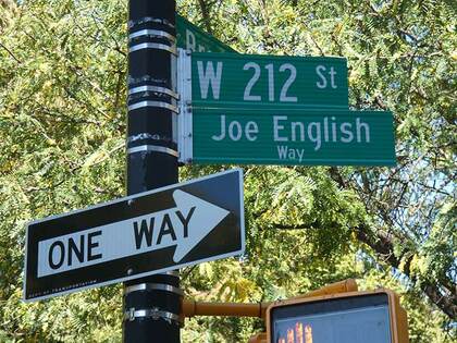 You’d be forgiven if your initial thought, if you’re familiar with the name Joe English, is that the corner here is named for the drummer for Paul McCartney and Wings for two years from 1975-1977. Despite his name, English was an American from Rochester, NY. Despite his short tenure, he played on bestsellers like Venus and Mars, Wings at the Speed of Sound and on the Wings Over America tour. Wings’ Joe English is still alive, though, and the Department of Transportation sub-names streets only for deceased local heroes. The Joe English (1940-1997) on the sign was a local crimefighter. He helped found the Inwood Patrol, a civilian patrol under the auspices of the 34th Precinct.